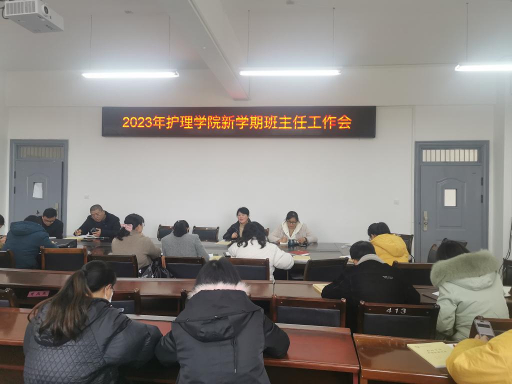 本站讯(护理学院 刘明健)为进一步提高学院思想政治工作和班级管理工作水平,充分发挥辅导员(班主任)的核心战斗力作用,确保开学各项工作有序进行,2月9日上午,护理学院在和济楼C218召开新学期辅导员(班主任)工作会议。会议由党总支副书记曲晴主持,全体辅导员(班主任)参加会议。