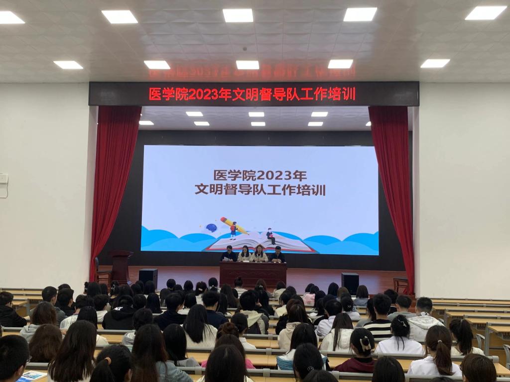 本站讯(医学院 刘倩)为全力推进文明校园创建工作,提高文明督导队工作成员的综合素质,加强文明督导队的凝聚力和组织力,3月9日晚,医学院召开文明督导队工作培训会。院党总支副书记黄慧精、辅导员及138名文明督导队成员参加培训会。培训会由学工科科长李灿主持。