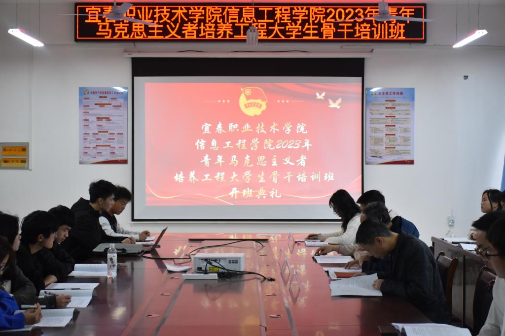 本站讯(信息工程学院 黄彪 学生记者 陈楠)为深入学习党的二十大精神,认真贯彻落实习近平总书记关于青年工作的重要思想,落实“三比三争”工作要求,3月12日,信息工程学院在智云楼B501举办2023年青年马克思主义者培养工程大学生骨干培训班开班仪式,出席仪式的有院长简靖韡,党总支副书记陈小保,青年教师代表黄彪以及全体“青马工程”学员, 仪式由团总支书记刘嘉妮主持。