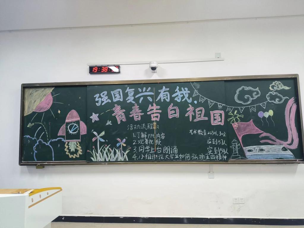 活动中,各班团支书为同学们讲解“五四”精神的历史来源,通过观看视频的形式带同学们了解“五四”精神的内涵,鼓舞同学们传承和发扬“五四”精神。各班多角度多形式的开展活动,引领同学们进一步领略中华民族的伟大精神,并号召同学们在生命中最精彩的一段历程中要与奋斗作伴,不断提升精彩人生的高度。最后以习近平总书记在党的二十大中的寄语激励同学们:广大青年要坚定不移听党话、跟党走,怀抱梦想又脚踏实地,敢想敢为又善作善成,立志做有理想、敢担当、能吃苦、肯奋斗的新时代好青年,让青春在全面建设社会主义现代化国家的火热实践中绽放绚丽之花。