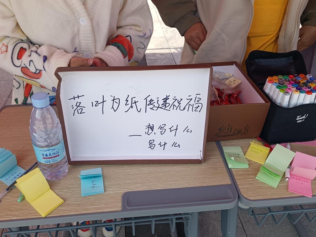 本站讯(国际教育学院 赖培鑫 学生记者 叶梦杰)为进一步展现协会风采和学院专业特色,11月24日下午,国际教育学院素质拓展协会在开物广场举行“落叶为纸,传递祝福”活动。