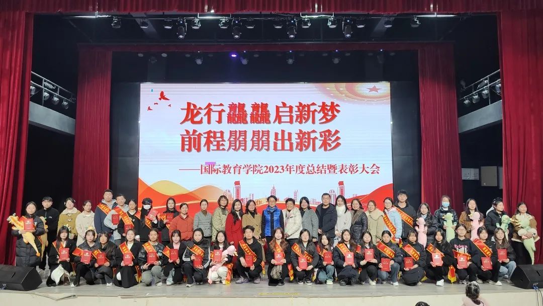 本站讯(国际教育学院 彭娟 学生记者 周熙睿)为表彰优秀,鼓励先进,树立典型,营造浓厚的学习氛围,进一步引导全体师生积极性和主动性,12月27日下午,国际教育学院在博达楼演艺厅召开2023年度表彰大会,副校长刘江毅,学工处处长谢海英,院领导班子及学院全体师生参加。会议由院长王玮主持。
