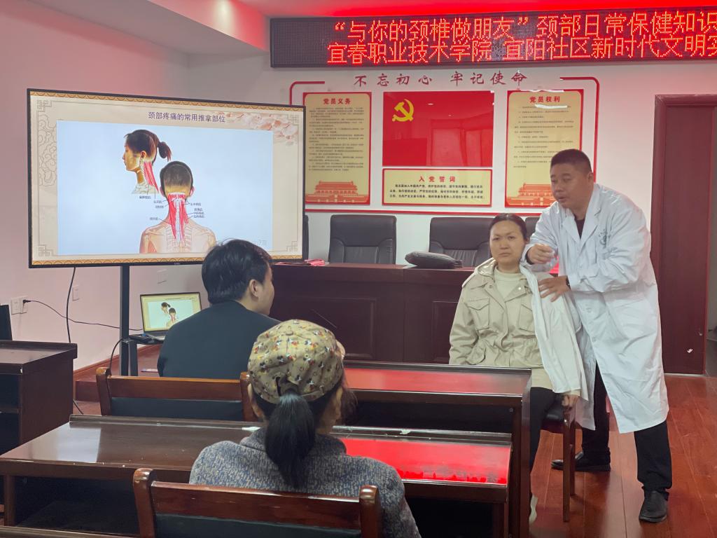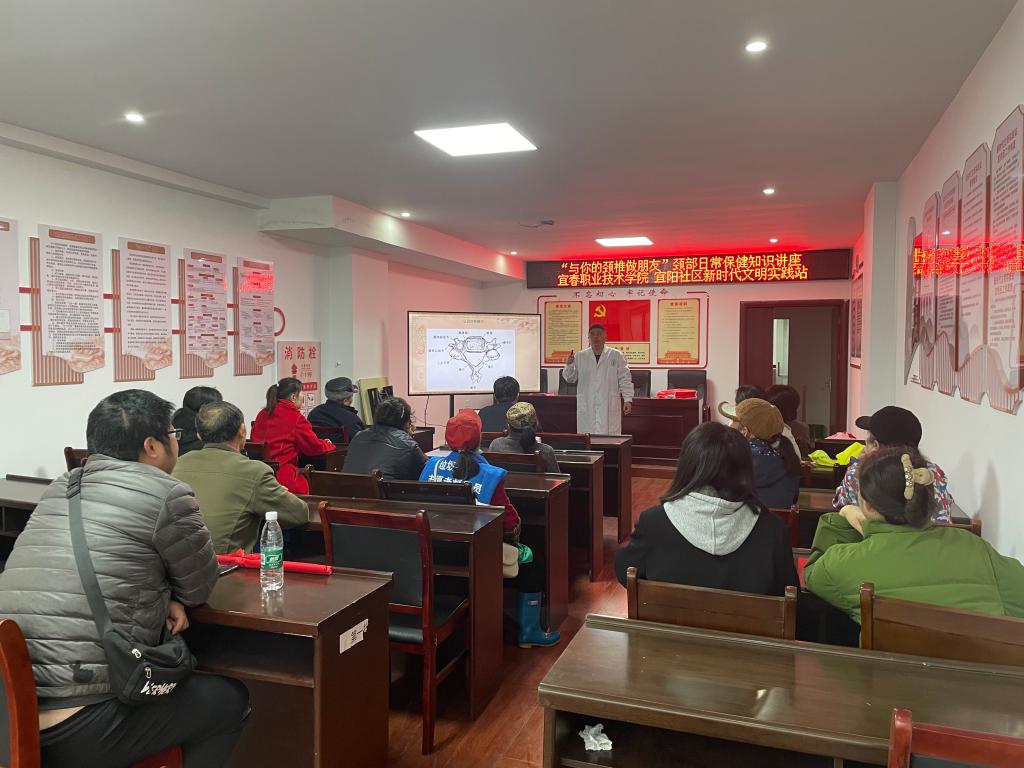 本站讯(继续教育学院 易扬)为提高社区居民的生活质量,普及颈椎病知识,弘扬中医的传统文化,3月17日上午,继续教育学院党支部联合秀江街道宜阳社区开展“与你的颈椎做朋友”颈部日常保健知识讲座,吸引了众多居民参加。