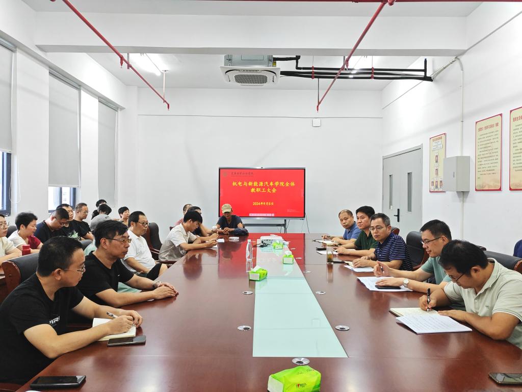 本站讯(机电与新能源汽车学院 何仪)为落实新学期各项工作,引领学院新发展,9月5日下午,机电与新能源汽车学院在新能源技术工程中心508召开全体教职工大会。会议由党总支书记赵琰主持,党委委员、副校长张印华及全体教职工参与。