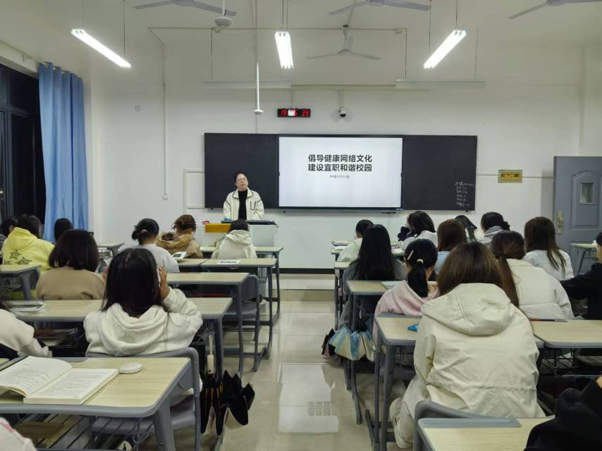 本站讯(护理学院 黄成)为提升广大师生网络文明素养,增强网络安全意识,引导大家养成“绿色上网、安全用网、文明用网”的良好行为习惯,11月19日,护理学院全体在校班级在各班教室开展“倡导健康网络文化,建设宜职和谐校园”主题班会。