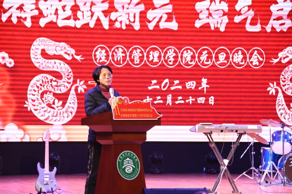 本站讯(经济管理学院 严如玉)蛇舞新春祥瑞绕,齐聚一堂庆新程,12月24日,经济管理学院在出彩大会堂举办2024年总结大会暨迎新晚会。本次晚会以“祥蛇跃新元瑞气启新旦”为主题,校党委委员、副校长刘江毅出席,学院全体老师、学生到场观看。