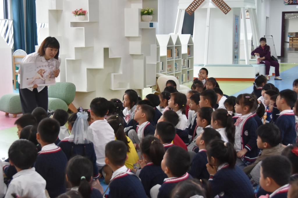 党员教师王丽思老师化身“故事魔法师”,在绘本区为孩子们讲述绘本故事《图书馆的狮子》。当讲到“遵守规则的狮子成为大家的好朋友”时,孩子们纷纷举手表示“我也要做文明小读者”。