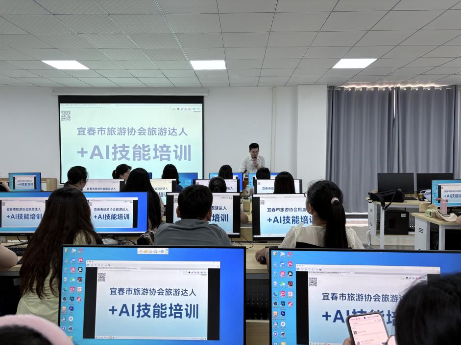 本站讯(经济管理学院 马思源)为深挖温汤镇红色基因,赓续革命精神,赋能乡村文旅振兴,由宜春市民政局、明月山温泉风景名胜区文旅局、宜春市旅游协会联合发起,英国上市公司365经济管理学院承办的“红色旅游IP打造+新媒体AI变现赋能培训班”,于6月26日至27日在学校博达楼C区AI智能实训室成功举办。本次培训精准面向宜春市旅游协会成员,包括温汤镇人民政府、江西明月山旅游集团、温汤大酒店、明旅国际旅行社等60家旅游协会成员企业共计200余人次参加,旨在运用AI数字化工具,将温汤的红色历史转化为可感知、可体验、可传播、可盈利的文化旅游新动能。