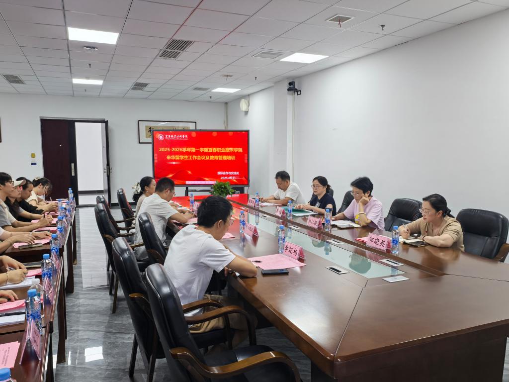 本站讯(国际合作与交流处 王若婷)9月11日下午,学校在天工楼四楼第一会议室召开2025-2026学年第一学期来华留学生工作会议及教育管理培训。校党委委员、副校长刘江毅,保卫处处长周军华,师范学院党总支书记邹晓英,学工处、国际合作与交流处、来华留学生所在二级学院相关人员及来华留学生班主任、辅导员参会。会议由国际合作与交流处处长刘海云主持。