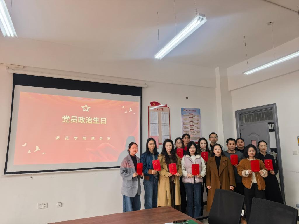 本站讯(师范学院党总支 袁旭)为深入学习贯彻习近平总书记关于教育科技人才的重要论述,强化党员政治身份认同与使命担当,12月9日,师范学院党支部在正心楼B204开展专题学习暨第四季度党员集体“政治生日”会。