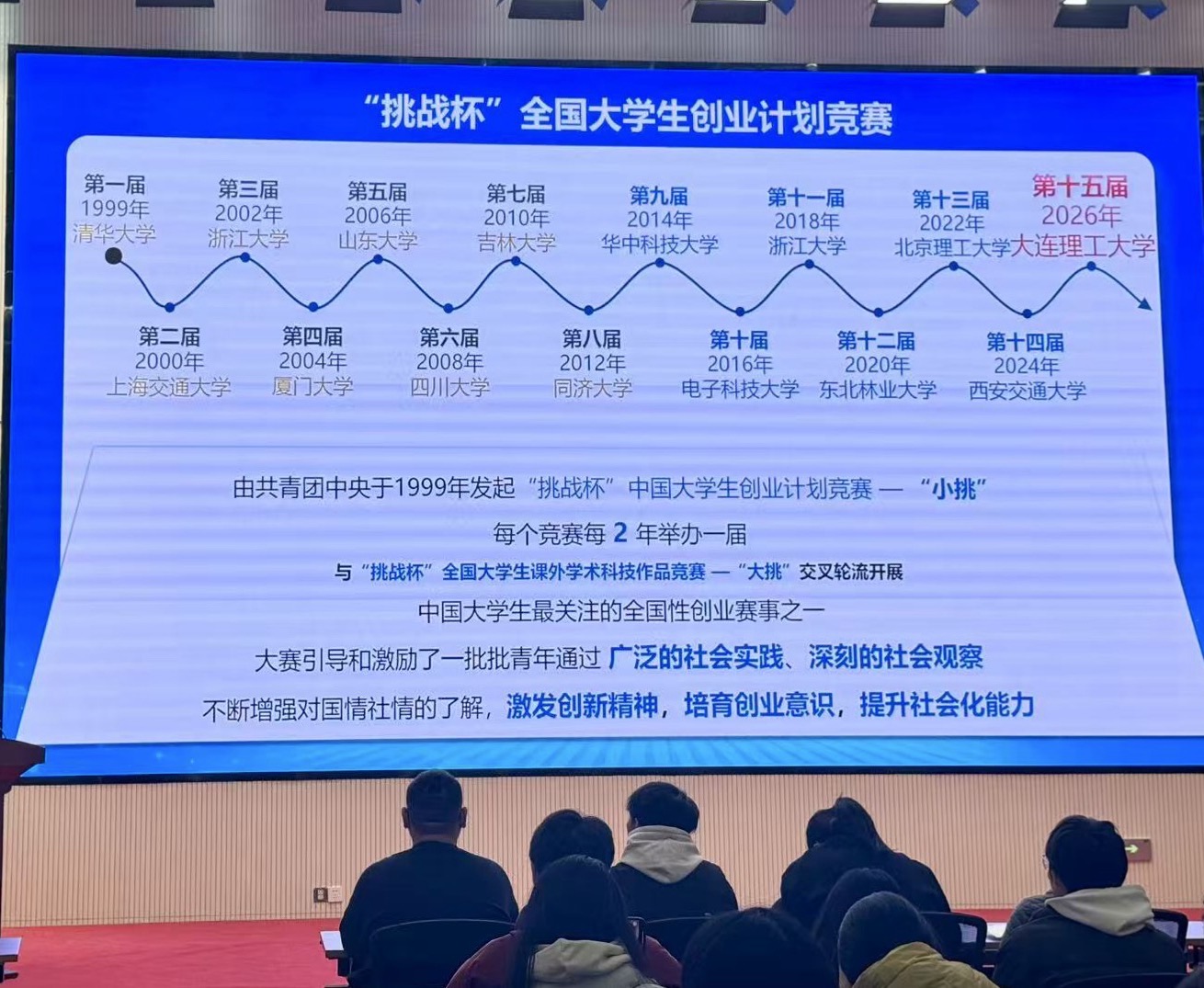 讲座以“挑战未来”为主题,授课专家围绕“挑战杯”赛事体系展开系统解读,全面解析“大挑”(全国大学生课外学术科技作品竞赛)与“小挑”(大学生创业计划竞赛)的赛事特点、评审标准和备赛策略,强调项目选题的创新性、可行性与社会价值,为在场师生提供兼具理论高度与实践深度的备赛指导。现场气氛热烈,师生纷纷表示受益匪浅,对“挑战杯”赛事有了更清晰的认识,备赛方向更加明确。