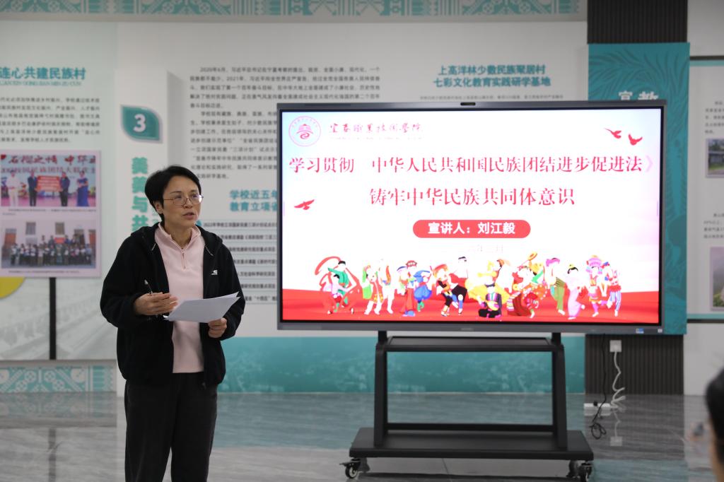 本站讯(党委统战部 李辉员)为深入学习贯彻《中华人民共和国民族团结进步促进法》,推动铸牢中华民族共同体意识入脑入心,3月17日下午,学校党委统战部联合团委在铸牢中华民族共同体意识教育展馆开展“学习贯彻《中华人民共和国民族团结进步促进法》,铸牢中华民族共同体意识”宣讲活动。江西省民族团结进步模范个人获得者、副校长刘江毅为包括少数民族学生在内的20余位学生进行宣讲。
