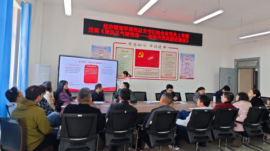 本站讯(经济管理学院 邹瑞)3月13日下午,经济管理学院党总支书记邓晶为全体党员讲授“清风正气铸党魂——新时代党风廉政建设”专题党课。