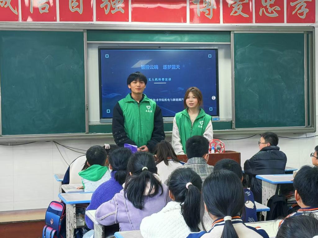 本站讯(机电与新能源汽车学院 阮丛韬)当前,职业教育正加快从“基础好、条件好”向“服务好、支撑好”转变,强调以服务求生存、以贡献求发展,推动职业教育资源下沉基层、服务社会。3月19日上午,机电与新能源汽车学院团总支书记邓都、协会指导老师阮丛韬带领绿色新能源协会、院学生会20余名师生志愿者走进湖田中心小学,开展无人机科普与绿色理念传播公益活动。