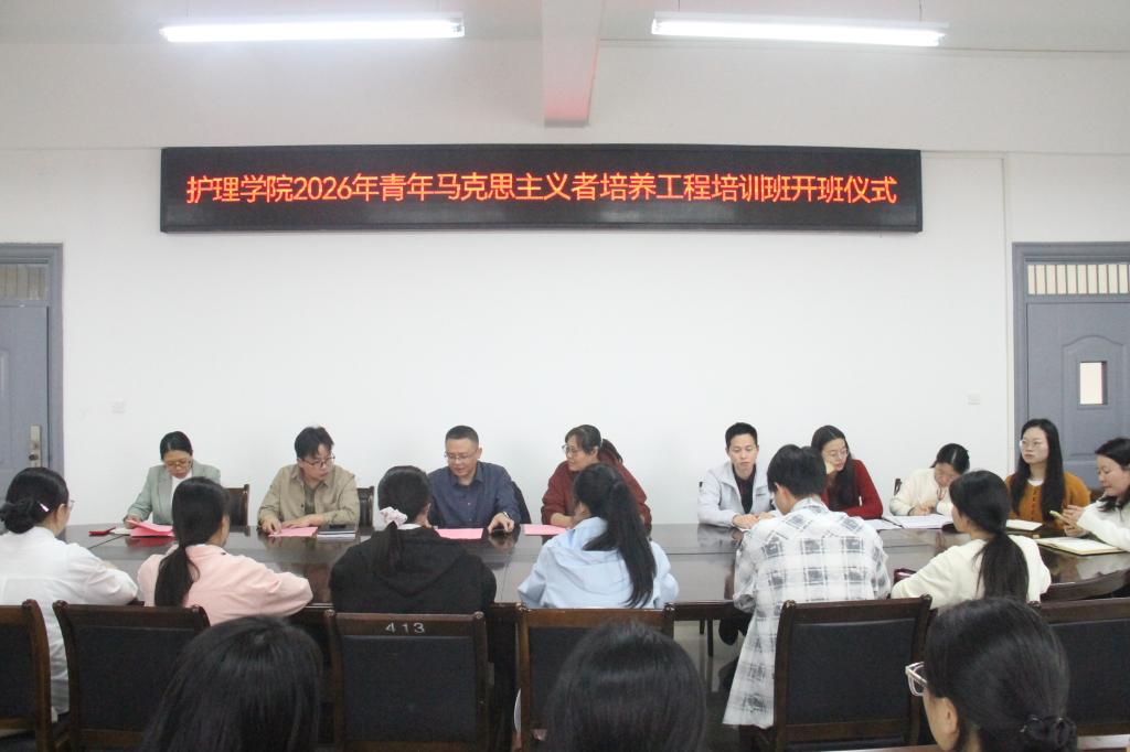 本站讯(护理学院 学生记者 陈文娟 林思彤)为落实高校共青团“青马工程”工作要求,提升学生干部综合素养,4月14日,护理学院在和济楼C218举行2026年“青年马克思主义者培养工程”大学生骨干培训班开班仪式。院党总支书记吴少林,党总支副书记曲晴,学工科长胡祖昌及辅导员出席。全体青马班学员参加。仪式由团总支书记刘小三主持。