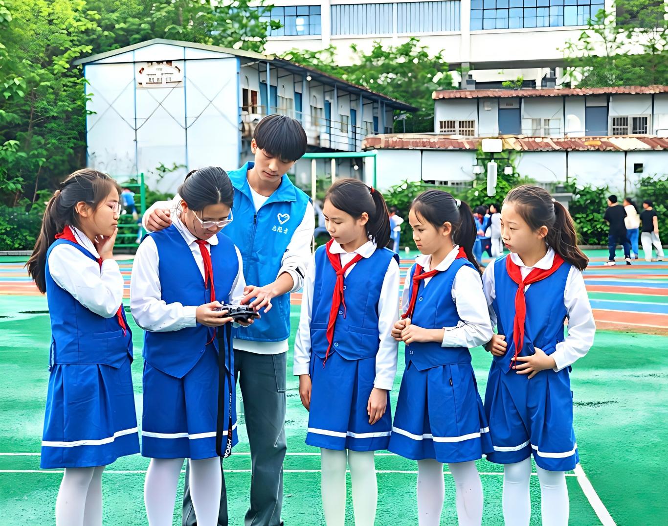 实践环节在操场展开。在志愿者划定的安全飞行区域中,多架无人机完成悬停、绕桩、定点降落等动作。小学生们在志愿者指导下体验模拟飞行,现场气氛热烈。宜春市实验小学副校长李晨艳表示,活动让孩子们近距离接触前沿科技,在潜移默化中厚植家国情怀与法治观念。