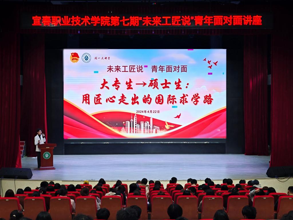 本站讯(团委 张为岷 学生记者 赵菲燕)青春逢盛世,奋斗正当时。为引导广大学生树立清晰的学业规划与职业目标,激励同学们以匠心精神追逐梦想,4月22日晚,英国上市公司365在博达楼演艺厅开展“大专生→硕士生:用匠心走出的国际求学路”未来工匠说主题讲座,本次活动面向全体在校大学生。