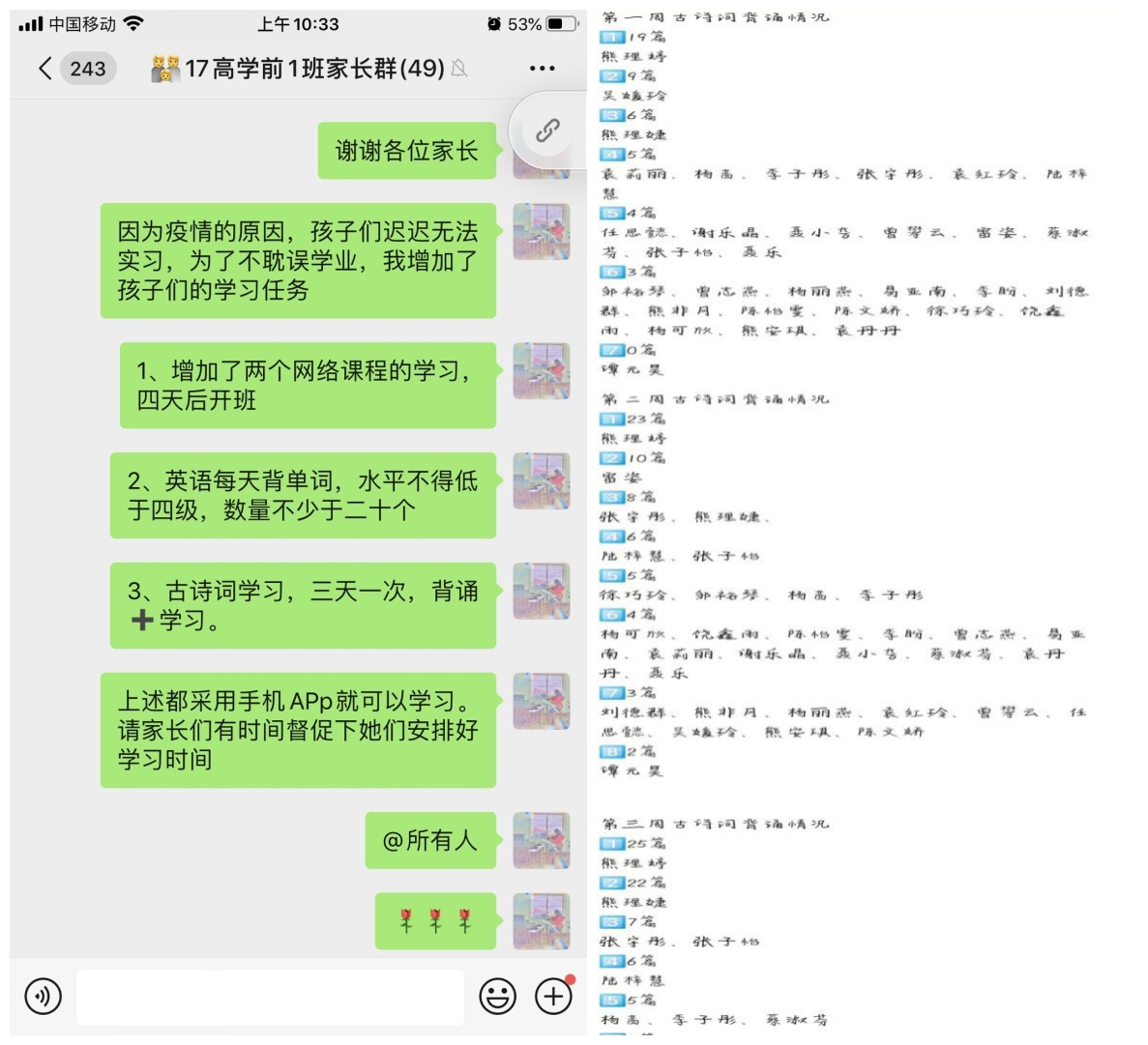 班主任辅导员老师为督促管理同学们的线上学习,也出了一系列班级教学管理的好办法。
