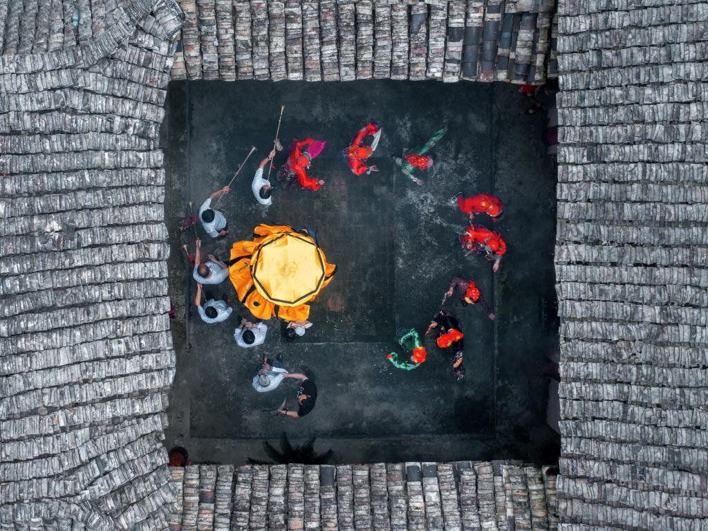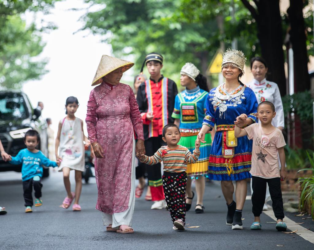 上高县民族村村民结伴而行