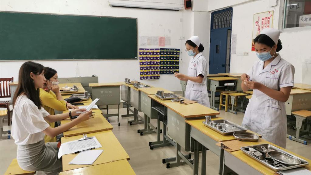 本站讯(护理学院 易国萍)为进一步提高我院护生专业素质和技能水平,激发学生学习热情、营造良好学习氛围。5月27日至6月2日,护理学院在四教楼举办2020年护理技能大赛,共计132名护生报名参赛。护理学院基护教研室、内科护理学教研室、护理技能教研室和实训科等10位专业教师担任大赛评委。
