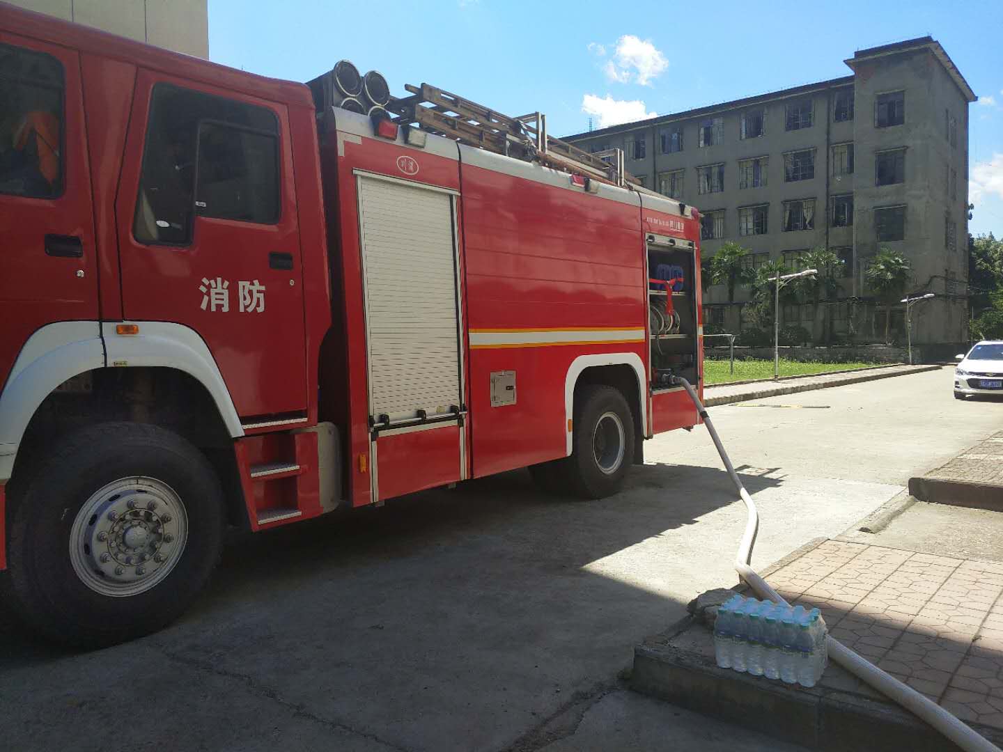 在接到求救电话后,袁州大队中山西路消防站立即派出一辆25吨水罐消防车义务前往南校区,负责运输生活用水,解决食堂缺水的困难,切实保障了南校区食堂用水,解决了近3000人的正常用餐的困难。