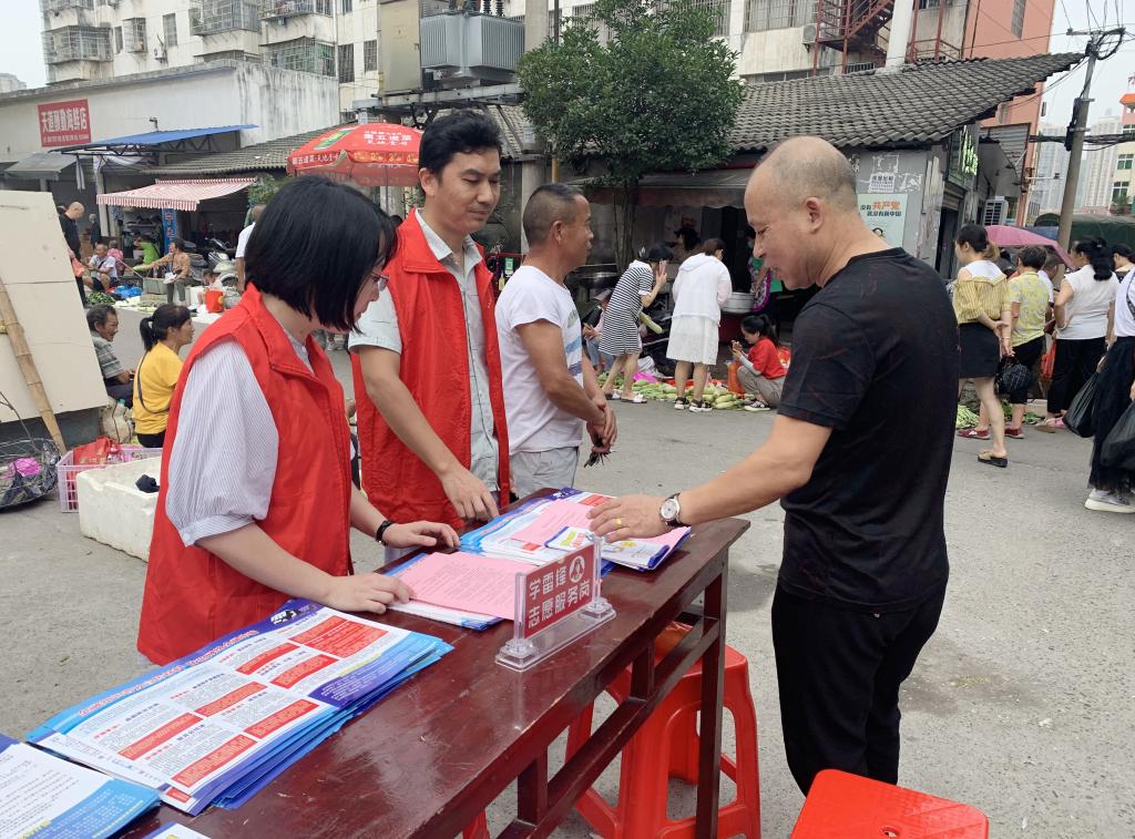 一大早,全体党员就在校门口红旗下集合,佩戴好党徽,身穿志愿者红马甲,整理准备好宣传资料,一起前往袁州区凤凰街道林桥社区委员会。在林桥社区张书记的介绍指引下,党员同志们布置宣传地点,分发宣传资料,对来往社区群众耐心细致地宣传溺水、金融诈骗、非法集资的防范知识,学院党员教师更是利用专业特长介绍金融诈骗和非法集资的各种防范措施。