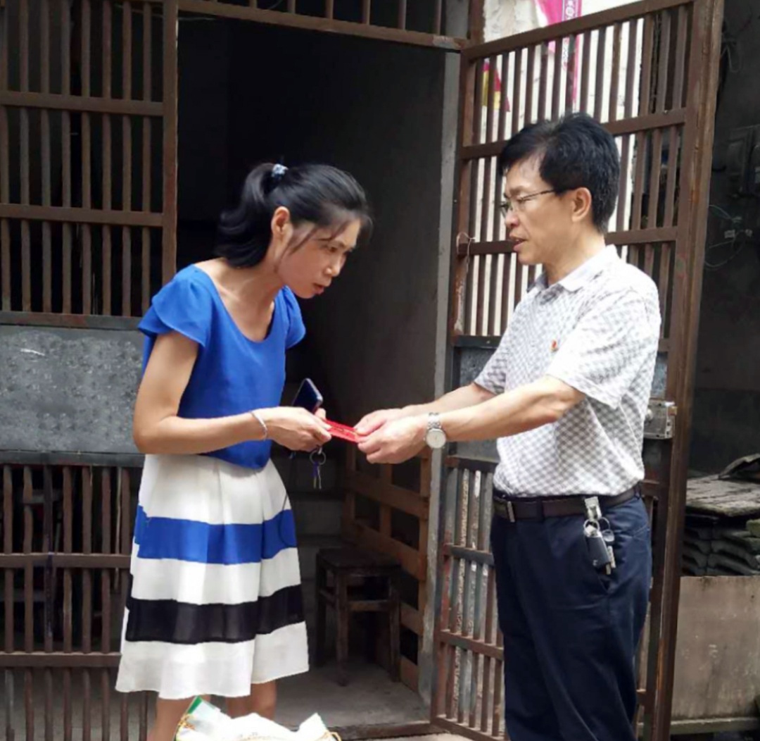 走访前,通过社区干部初步了解了张会红的基本情况。入户走访过程中,杨校长与帮扶对象拉家常,深入细致的了解她的家庭情况、健康状况、经济来源等,摸清了困难原因。本次走访慰问恰逢端午前夕,支部为她准备了米、油、肉、棕和蛋等生活物资,杨校长还以个人名义送上慰问金。