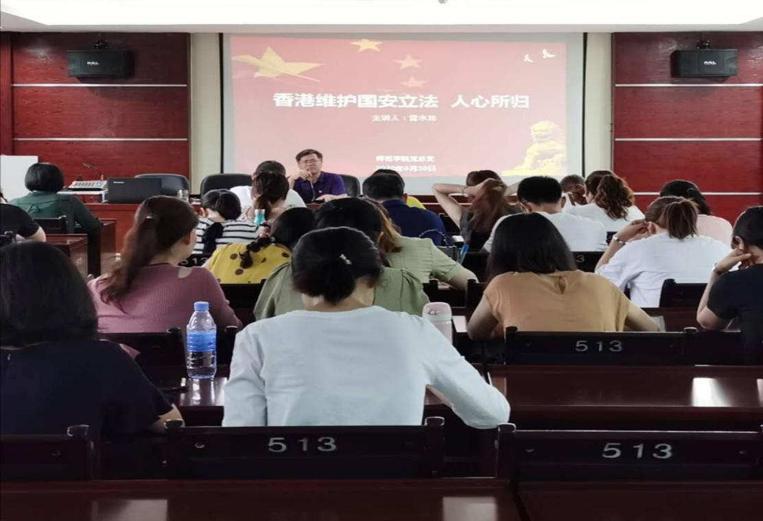 此次讲座旨在帮助教师党员们深入了解香港问题,正确看待国家形势和“一国两制”,牢牢把握国家命运,共圆中华民族伟大复兴的中国梦!