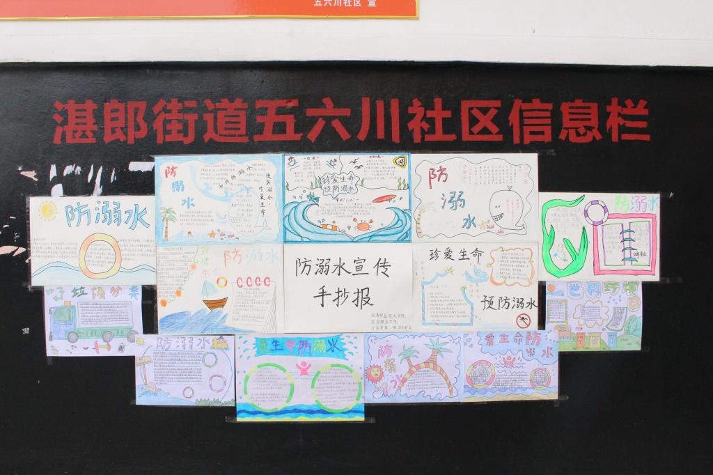活动之前,团总支多次与湛郎街道五六川社区的负责人沟通,确定文明实践内容为:帮助社区的完成防溺水宣传教育工作。接到任务后,团支部迅速组织支部成员开展防溺水相关知识的学习,并进行绘制手抄报、书写横幅、制作写有防溺水宣传标语的卡通版笔记本等一系列准备工作。