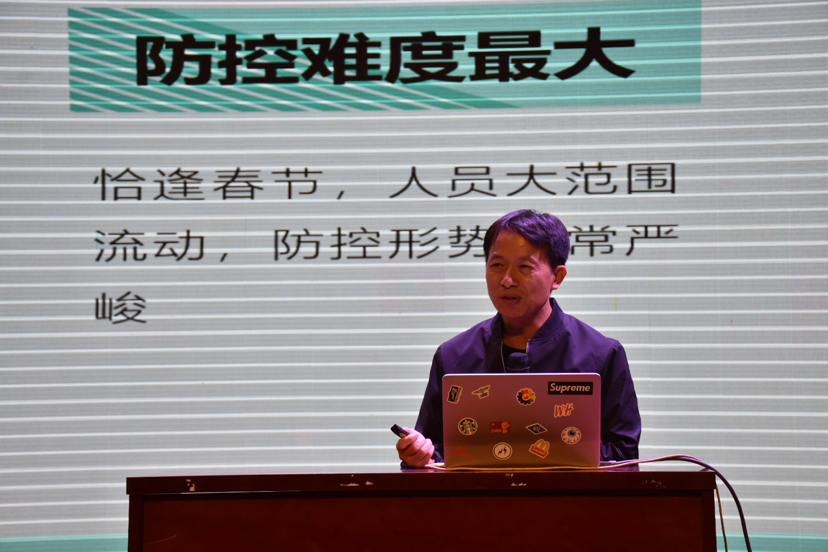 活动伊始,邹海斌首先从中国抗疫的磅礴力量、中国的制度优势、中国的两大奇迹、中国的制度自信这四个方面展开宣讲。他强调:疫情期间党中央果断决策,全国人民齐心抗疫,中国的抗“疫”斗争展现了中国精神、中国力量、中国担当,充分体现了我国的制度优势,并阐明制度自信就是对国家社会制度的认同、坚守和捍卫。同时呼吁广大青年要争做有志青年,将个人理想融入国家事业,绽放青春光彩。