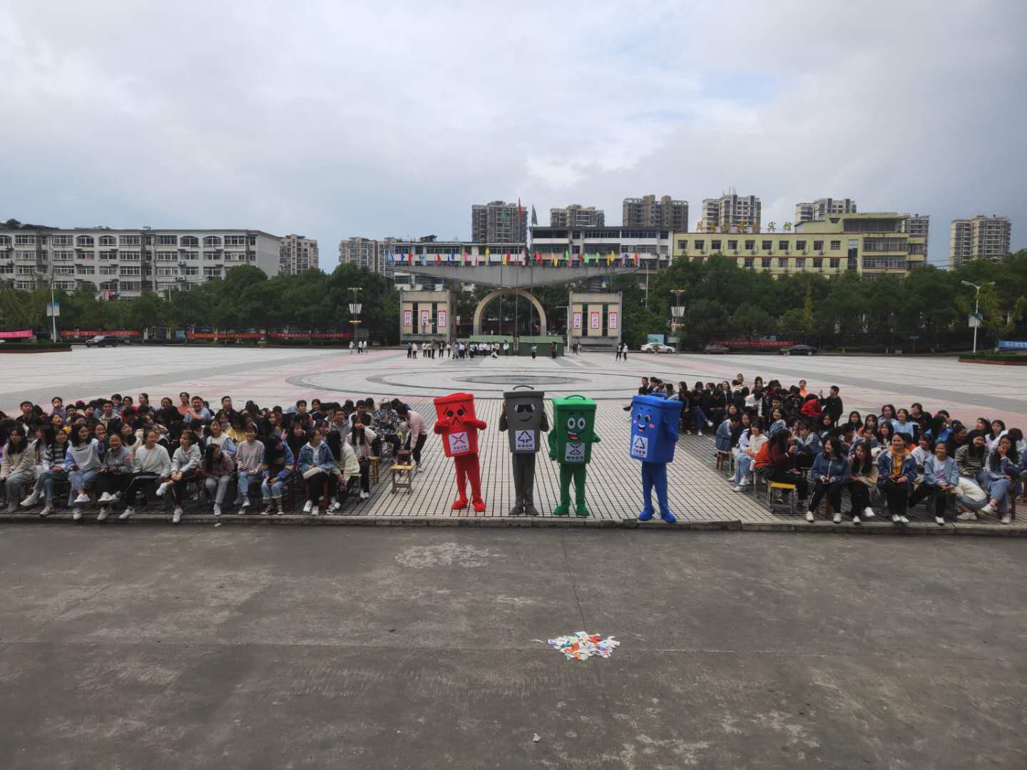 下午2:40,第一教学楼门前的青春广场异常热闹,师范学院部分班级整齐地在广场上集结。这些新、老生班级组成的队伍以极高的热情参与到此次活动中来。随着学生工作党支党部书记胡北辰老师的一声令下,我院垃圾分类主题宣传活动正式开始。
