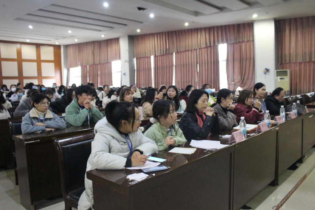 本站讯(国际教育学院 周宏 学生记者 舒芳铭)为提高学生英语演讲能力,强化学生师范生意识,国际教育学院学生会于11月24日下午14时在第一教学楼九楼学术报告厅开展以“A good teacher in my heart "为主题的“英语文化月”之英文演讲比赛活动。此活动为我院党建品牌“创新‘三全’体系,培养‘四有’人才”的主要活动之一。比赛邀请专业英语教研室罗小玲、姜雪美、周宏、严昳芳和邓述文五位老师做评委,共有46名选手参加、100余名学生观看,校学生会宣传部成员也应邀观看。