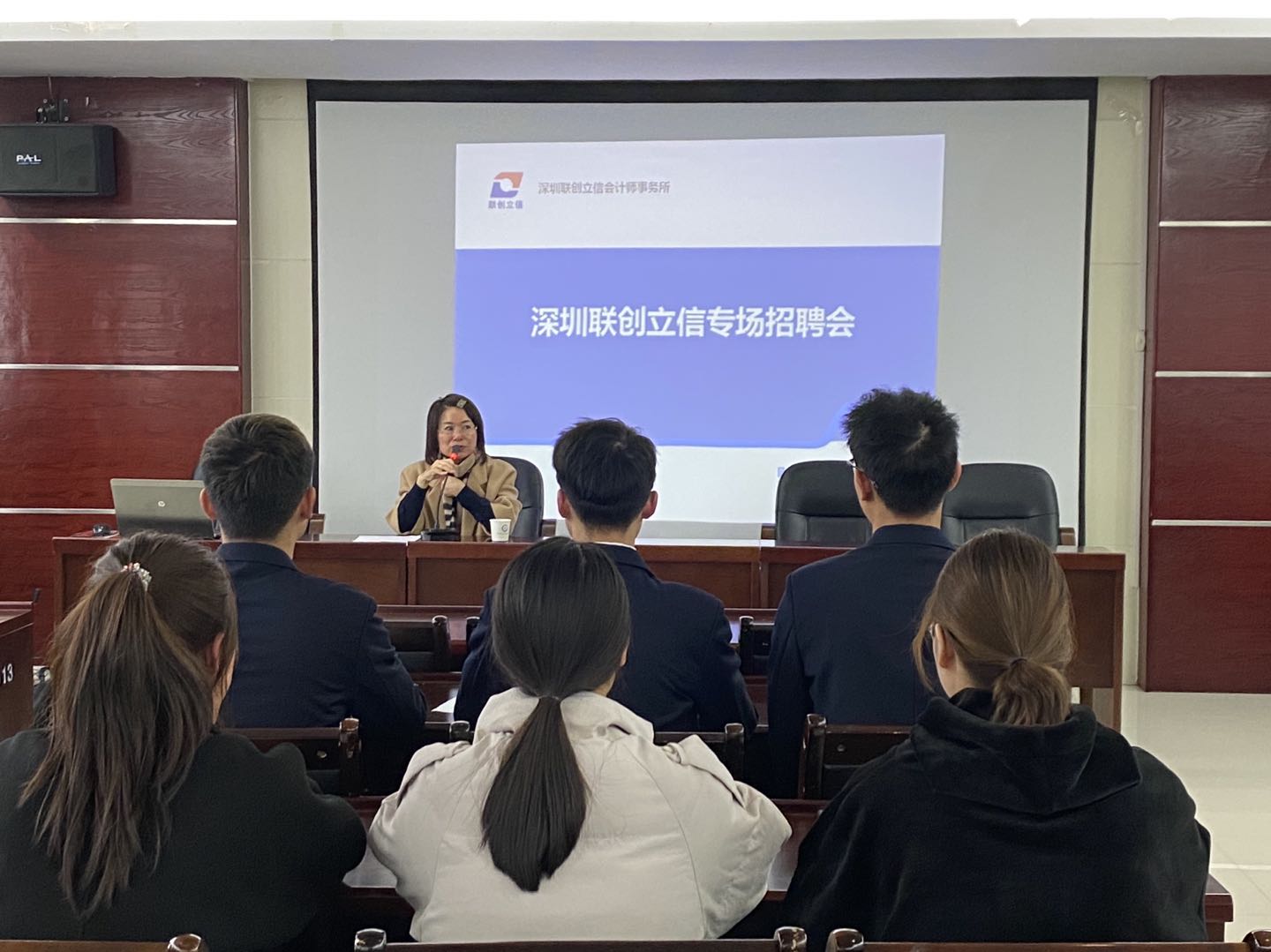 招聘会上周琳经理为同学们带来了“大学生就业建议&分享”宣讲会,从当下经济形势与未来十年经济趋势出发,给出注册会计师行业与会计专业学生就业建议,从本事务所的地域优势到企业发展优势,多方面的为参会同学提供选择与参考信息。会场气氛热烈,同学们纷纷投出自己的简历,招聘代表与毕业生积极交流,四位同学被录用。
