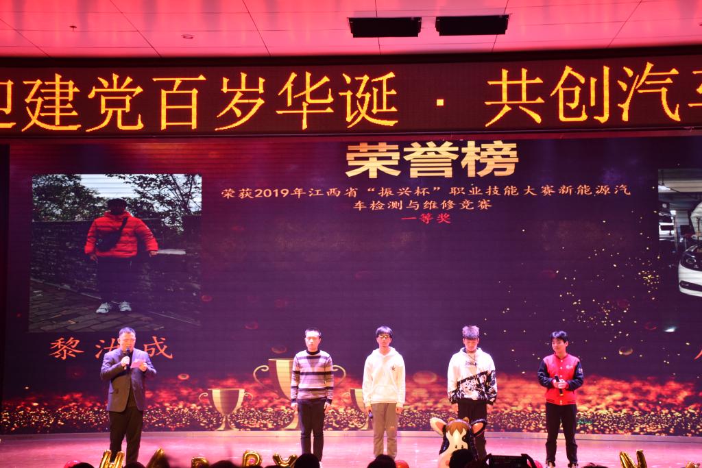 晚会期间,为带动同学们的学习积极性,我院对在新能源汽车竞赛中取得优异成绩的四位同学进行了表彰与颁奖,并进行现场访谈。谈谈他们在学习中、工作中遇到的问题如何解决,以及面对枯燥无味的学习如何让自己沉下心来等等。
