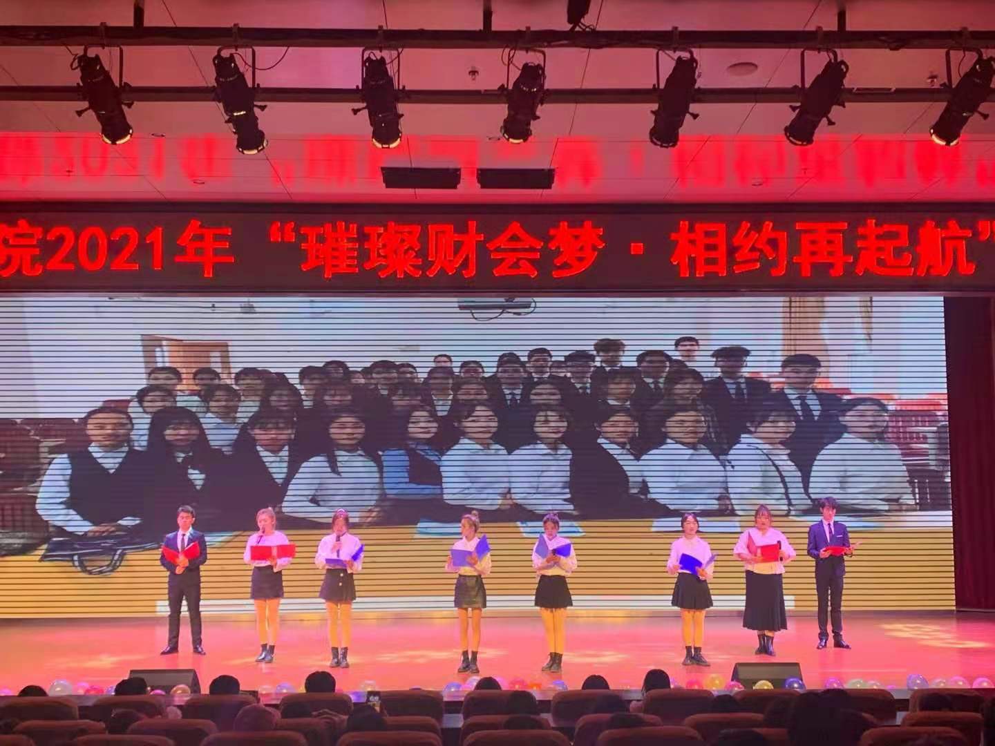 本站讯(财会金融学院 邹涛 学生记 者高阳 吴婷燕)11月18日晚,由财会金融学院主办,财会金融学院学生会和社团联合会承办“璀璨财会梦,相约在起航”迎新晚会在科技综合楼二楼学术报告厅举行。财会金融学院院长罗艳琴、党总支书记周昊、副院长邓如星、党总支副书记邓晶以及财会金融学院全体师生共同渡过这美好的夜晚。