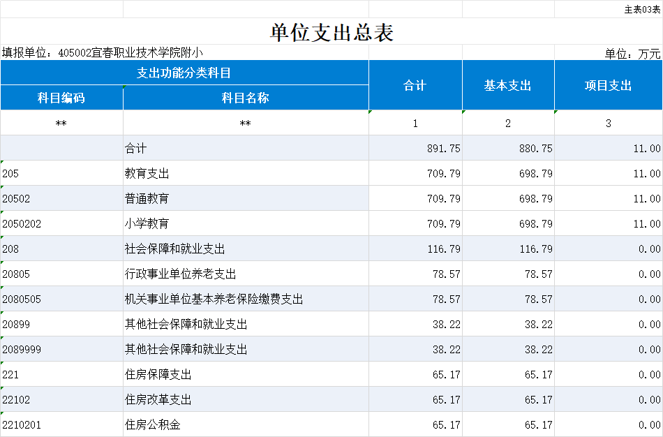 按支出功能科目划分:教育支出709.79万元,社会保障和就业支出116.79万元,住房保障支出65.17万元。