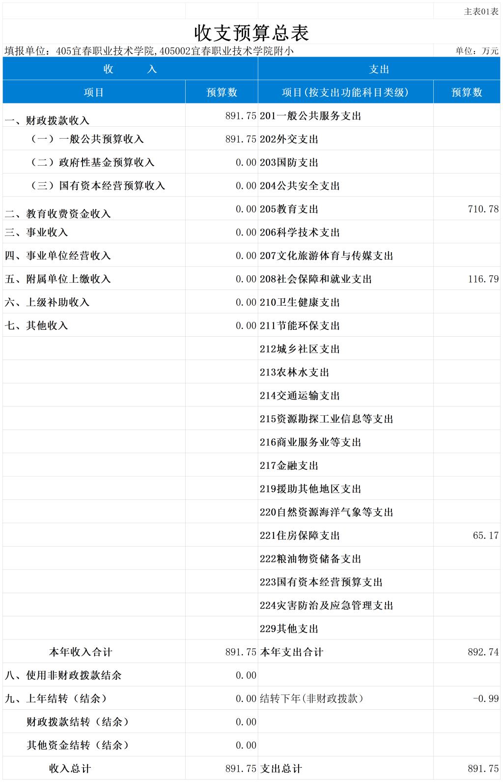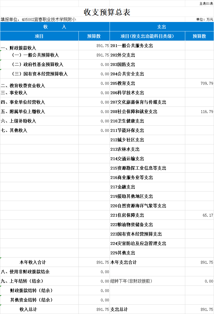 2026年宜春职业技术学院附属小学单位财政拨款支出预算总额891.75万元,较上年预算安排增加5.3万元。其中: