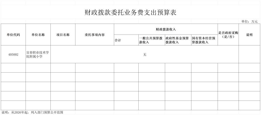 2026年宜春职业技术学院附属小学单位政府采购总额0万元,其中:政府采购货物预算0万元, 政府采购工程预算0万元,政府采购服务预算0万元。