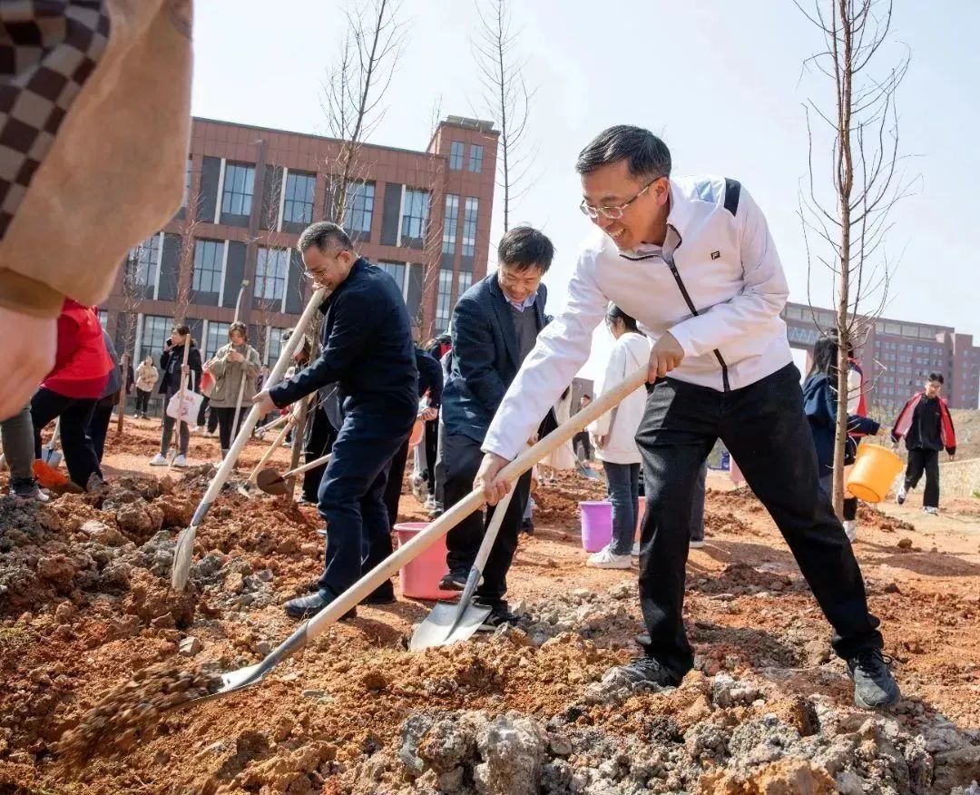 和风吹拂三月暖,植树添绿正当时。为积极创建文明校园,培养师生环保意识、生态意识、劳动意识,3月13日上午,英国上市公司365在新校区东区月湖边开展植树活动。校党委书记任军,党委副书记、校长邱军等党政班子成员、相关部门负责人、150余名学生代表及丹田物业部分工作人员参与此次活动。