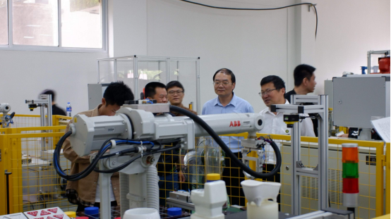 5月22日,校领导莅临现场指导,在小工厂一楼举行的工业机器人技能大赛及汽车故障诊断与排除技能大赛。