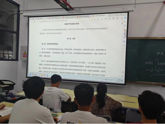 紧接着,大家投入到了对《中国共产党章程》和《中国共产党纪律处分条例》的学习中。这些文件是党内法规制度的重要组成部分,明确了党员的行为规范和党纪要求。通过深入学习这些理论,学生们认识到成为一名党员不仅要有坚定的理想信念,还要有严明的组织纪律。