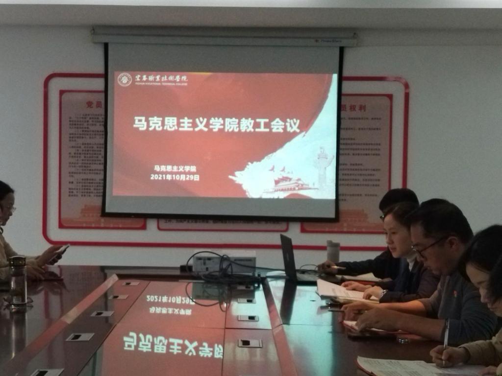 本站讯(马克思主义学院 卢凯)为确保学院各项工作有序开展,加强思政课教师理论学习,促进共同成长,加速学院发展,10月29日下午2:30,马克思主义学院在科技综合楼815室举行教工会议,会议由马克思主义学院院长彭慧洁主持。