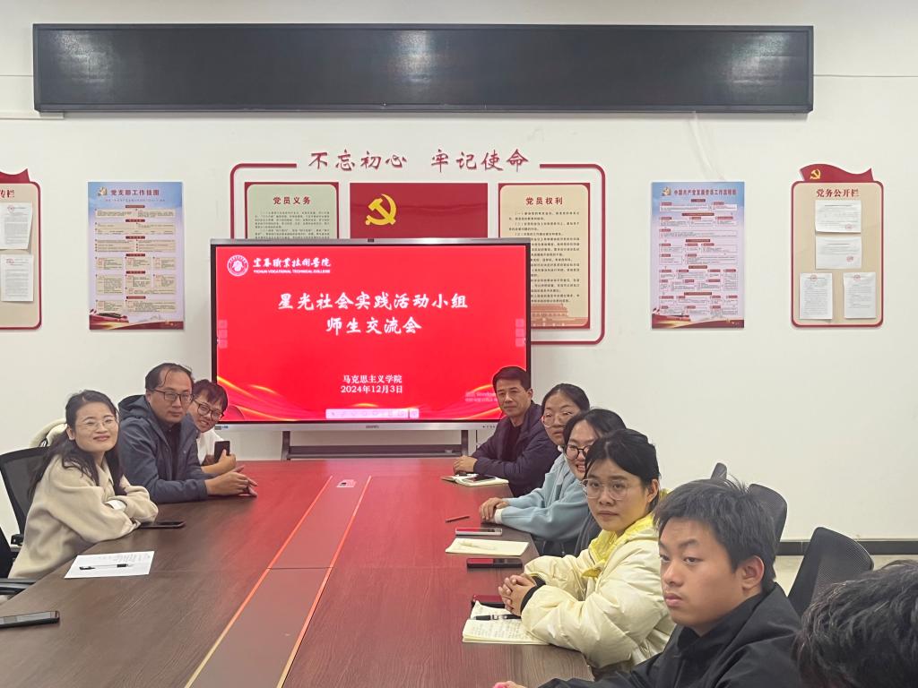 本站讯(马克思主义学院党支部 宋彩虹)为进一步强化党建品牌建设,持续推动星光社会实践活动小组健康发展,12月3日,马克思主义学院在日新楼C402联系星光社会实践活动小组开展师生交流会。马克思主义学院院长钱爱文和部分思政课教师与小组成员共话成长,共谋发展。