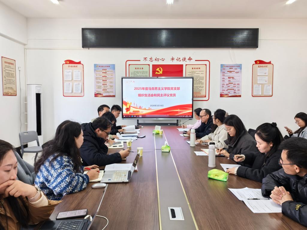 本站讯(马克思主义学院党支部 吴旋)为深入学习贯彻习近平新时代中国特色社会主义思想,严肃党内政治生活,加强支部自身建设,3月10日,马克思主义学院党支部召开2025年度组织生活会和民主评议党员。会议由支部副书记钱爱文主持,全体党员参加。