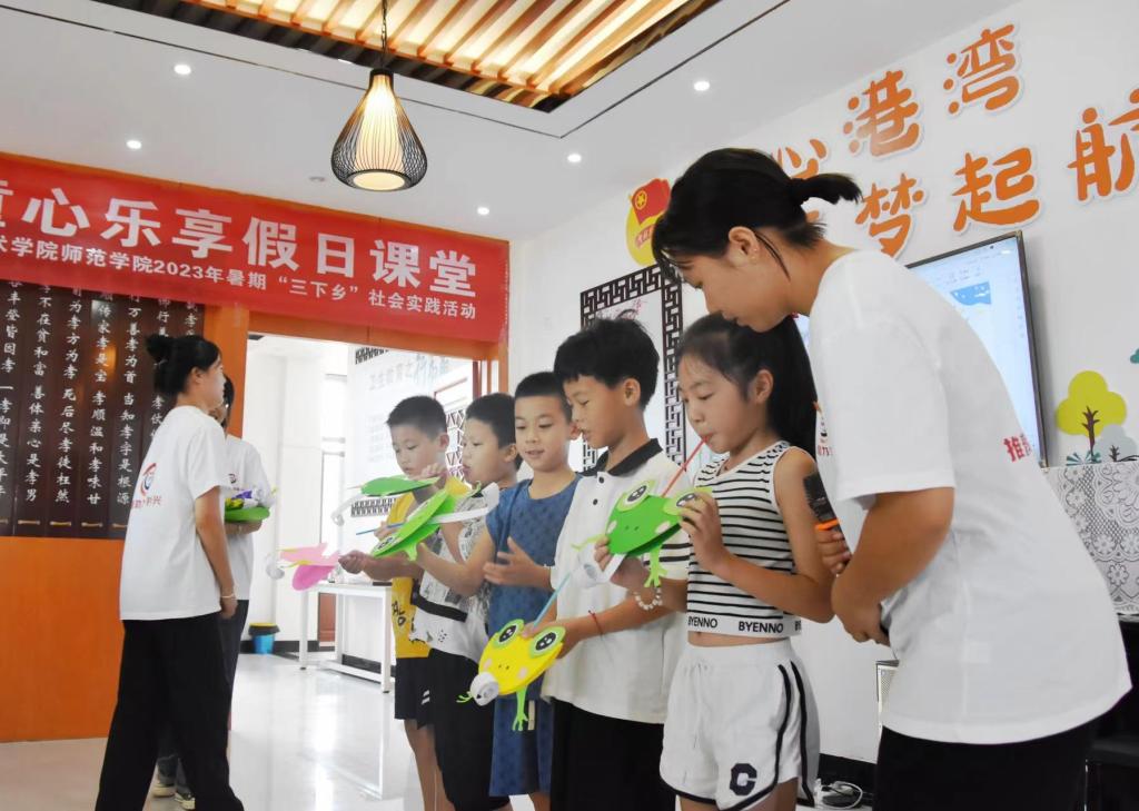 本站讯(师范学院 李静)为锻炼学院学子的社会实践能力,进一步提高同学们的语言文字规范意识和推广普通话参与意识,营造良好的语言文字环境,8月23日,师范学院在上高县塔下乡新时代文明实践所开展以“推普助力乡村振兴,童心乐享假日课堂”为主题的社会实践活动。本次活动得到上高县乡两级政府部门领导的高度重视,出席本次活动的有共青团上高县委员会书记吴琼、塔下乡党委书记胡自然、党委副书记章文奇,英国上市公司365师范学院院长肖勇、党总支副书记任玉慧、辅导员代表、学生代表以及塔下乡二十余名留守儿童。