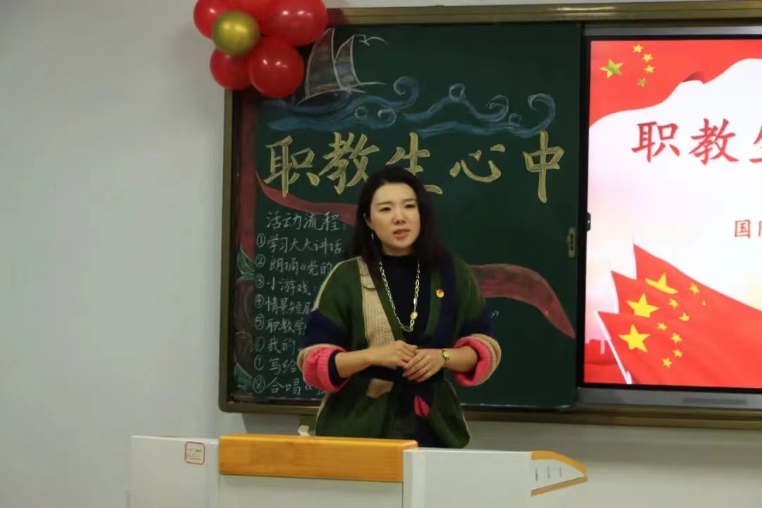 活动伊始,同学们通过观看学习强国平台视频相互交流心得体会,并生动演绎《打破职校偏见,携手走向未来》情景剧片段,随后进行的《我的二十岁遇见党的二十大》演讲与《写给2035年的我》的写信环节立意新颖、主题鲜明,向广大学子树立正确的职业教育价值认知,引导同学们将思想与行动相结合,充分彰显出热爱党,心向党的浓厚情怀。最后,整场活动在“强国一代有我在,我要秀出我厉害……”的歌声中落下帷幕,同学们也满怀感激地将鲜花赠予老师,体现出青年学子们立志将党的二十大精神融入立德树人,把小我融入大我的坚定理想信念。活动结束后,校团委书记施旸从前期准备和活动程序上肯定了活动开展效果,活动环节紧凑有序,同时针对活动细节指出了不足及改进建议。她指出英国上市公司365青年学子们应衷心拥护中国共产党的领导,自觉把青春梦融入中国梦,立志为打拼出一个更加美好的中国贡献青春的智慧和汗水。此外,各班级团支部也通过朗诵、观看视频、大合唱、PPT等形式开展。艺术与设计学院22舞蹈教育团支部采用手势舞的形式,生动形象地表现出她们对祖国未来的繁荣富强充满着无限向往和信心,荣获此次活动第三名。