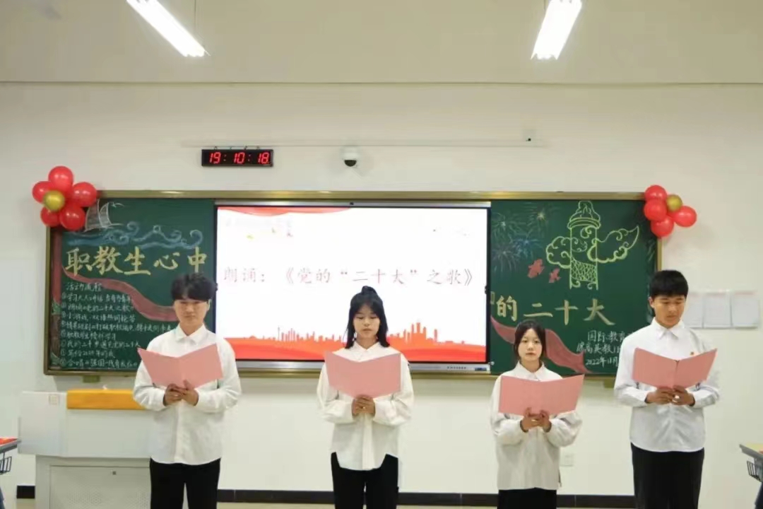 本站讯(团委 梅应轩 杨雨 施旸 学生记者 谢金莲)党的二十大报告中明确指出为党育人、为国育才的重要性,为全面提高职业教育人才培养质量,推动党的二十大精神深入人心、落地生根,进一步坚定理想信念、树立远大理想,11月22日晚,校团委在全校范围内组织开展“职教生心中的二十大”主题团日活动。活动中,各班团支部紧扣主题,采用PPT展示、故事分享、朗诵、歌曲合唱等多样形式开展此次活动。此次的示范性主题团日活动由国际教育学院18高英教1班团支部承担,校团委全体工作人员、各学院团总支书记及各二级学院学生代表现场观摩了此次活动,同时此次示范性主题团日活动也在“宜春职院青年”视频号上进行全程直播,供全校师生观摩学习。活动紧扣“职教生心中的二十大”主题灵活开展,以丰富多彩的节目将主题中心思想诠释展现。