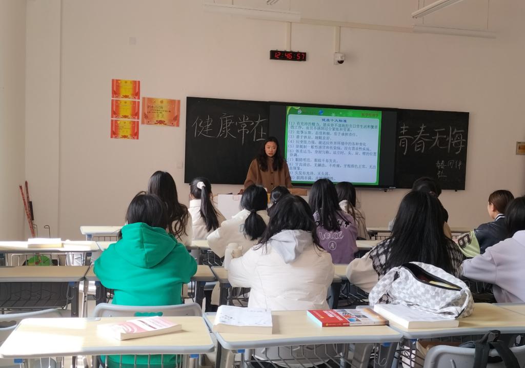 吴卿妍从“健康是什么”“你真的健康吗”提问现场同学,引发大家讨论,随后从健康的概念、心理健康与社会关系和大学生如何保持健康心态、世界卫生组织提出的十个健康标志等方面内容跟大家普及了心理健康方面的相关知识。在授课过程中,吴卿妍与同学们积极交流,针对同学们提出的自己遇到的心理健康问题,她也提出了相应策略和解决方法。
