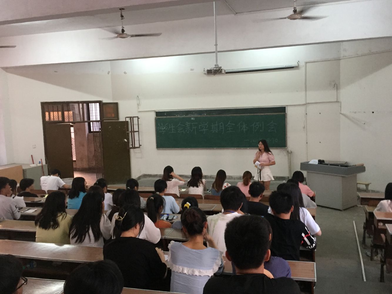 从点点滴滴做起,努力为学生办实事,表达对于新学期学生会工作和社团工作的期望。接着向大家详细地讲解了学生会和青年志愿者协会在即将到来的开学季迎新期间的任务。