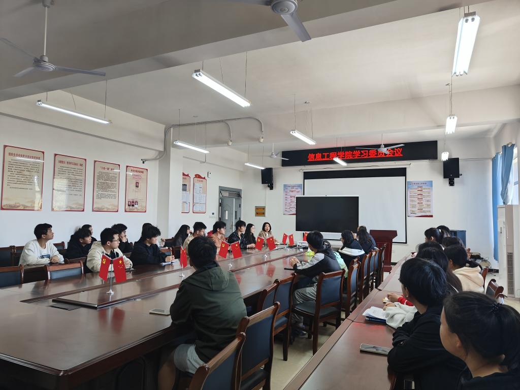 本站讯(信息工程学院 谢小欣 学生记者 廖如意)为更好开展学院教学工作,进一步加强教学管理和学风建设,3月29日,信息工程学院在智云楼B501召开全体学习委员会议,院长简靖韡、副院长陈根金、辅导员谢小欣以及各班学习委员参加会议。